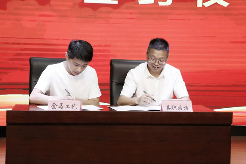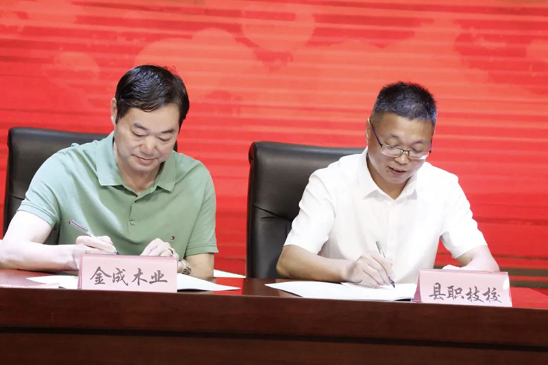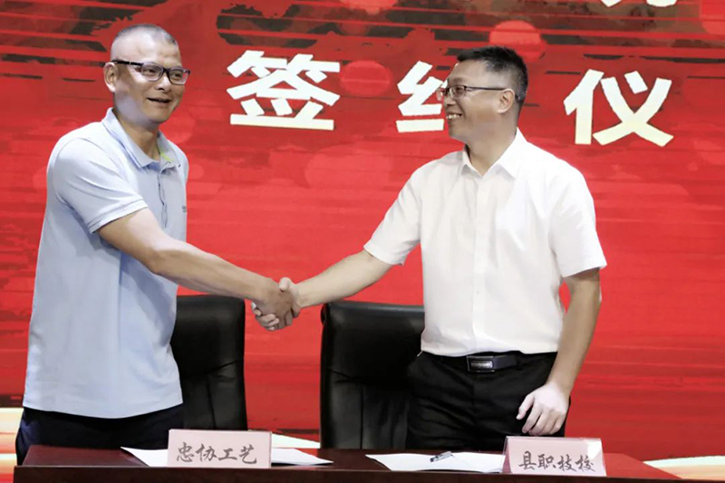 云和職技校黨總支書記、校長陳偉華與浙江新云木業(yè)集團(tuán)有限公司、云和金成木業(yè)有限公司、浙江忠協(xié)工藝品有限公司、浙江金爾泰玩具有限公司、浙江金馬工藝品有限公司5家企業(yè)代表簽約。